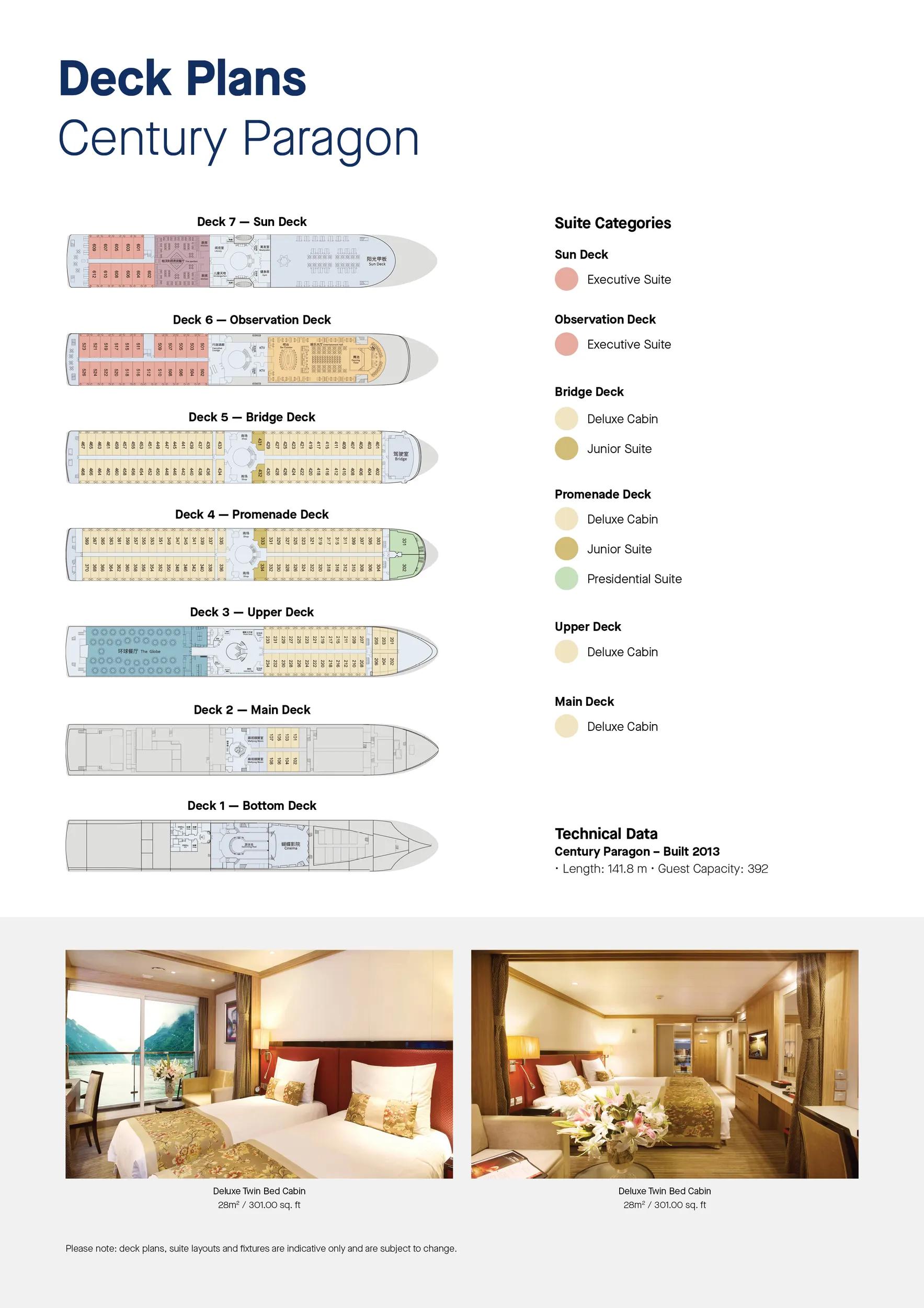 Step aboard Century Paragon and marvel at the awe-inspiring scenery from the comfort of your private balcony as you sail along the Yangtze River in China, the longest in Asia.